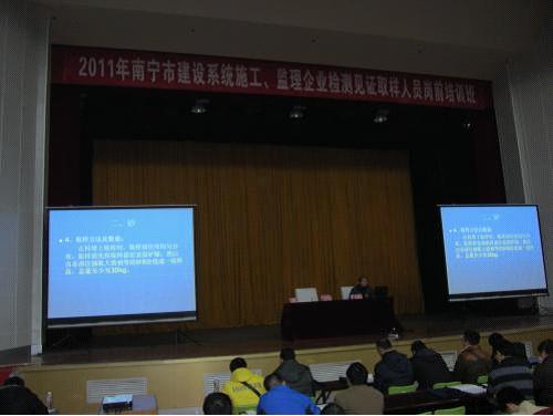 根據(jù)《關(guān)于舉辦2011年施工、監(jiān)理企業(yè)見(jiàn)證取樣人員崗前培訓(xùn)班的通知》,南寧市從2011年12月6日開(kāi)始,對(duì)南寧市各施工單位、監(jiān)理單位、房地產(chǎn)開(kāi)發(fā)單位以及市各有關(guān)建設(shè)單位在從事或?qū)氖陆ㄔO(shè)工程見(jiàn)證取樣工作的人員進(jìn)行建設(shè)系統(tǒng)施工、監(jiān)理企業(yè)檢測(cè)見(jiàn)證取樣人員崗前培訓(xùn)及考試。南寧品正參加了第4期培訓(xùn)及考試,參加培訓(xùn)總?cè)藬?shù)達(dá)到84人。