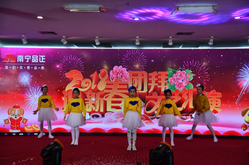表彰大會結(jié)束后,公司舉行迎新春團(tuán)拜文藝晚會。一曲手語舞《國家》拉開了晚會序幕,節(jié)目內(nèi)容豐富多彩,有唱歌、跳舞、古箏表演、魔術(shù)表演、京劇表演、大合唱等等。席間臺下歡聲笑語不斷,臺上員工載歌載舞,分享一年碩果,共同迎接新的一年。