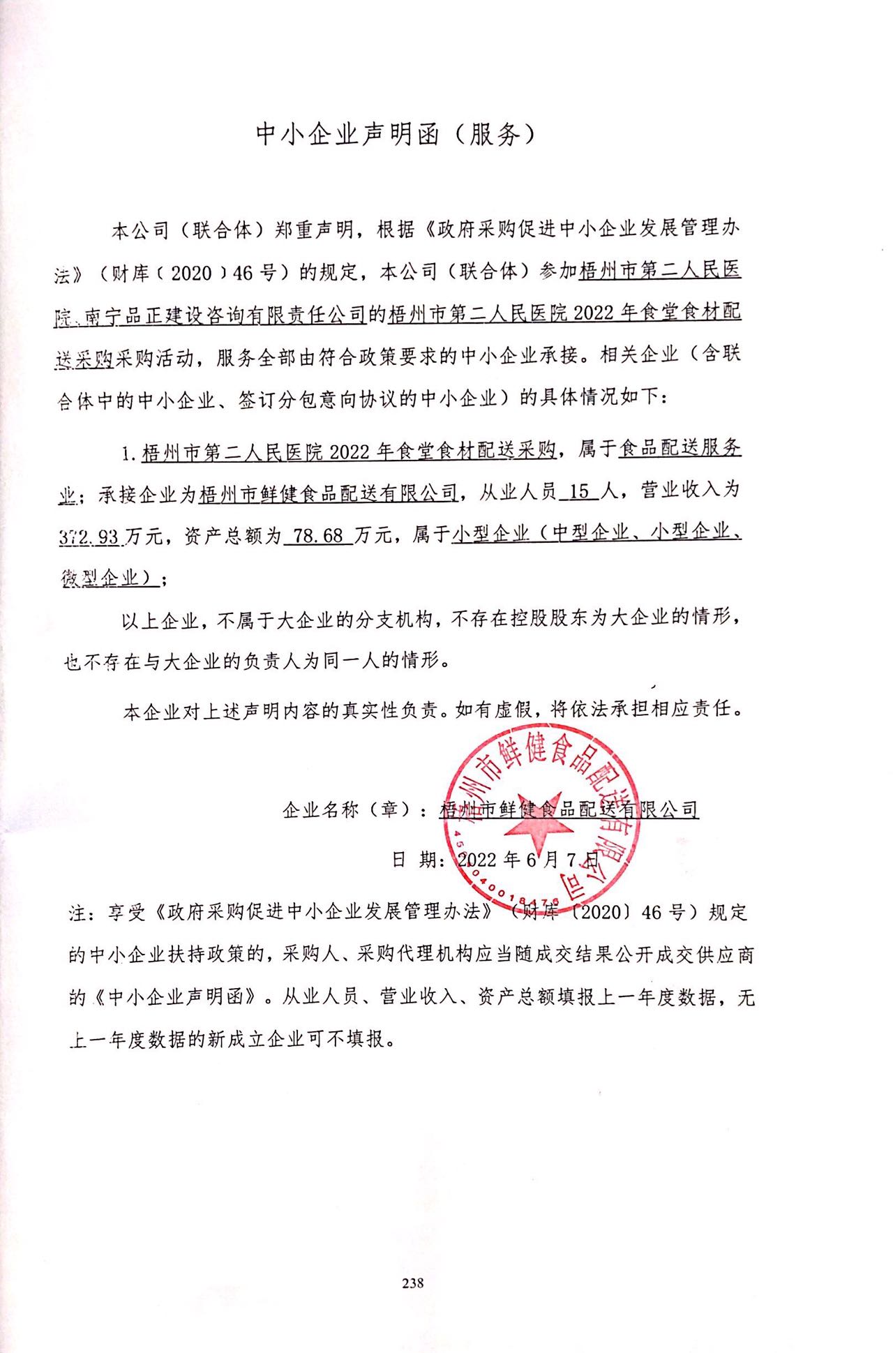 名稱(chēng):梧州市第二人民醫(yī)院2022年食堂食材配送采購(gòu) 服務(wù)內(nèi)容:本次通過(guò)競(jìng)爭(zhēng)性磋商的方式確定一家糧油、肉類(lèi)、瓜菜類(lèi)、水果、飲品、零食及干雜副食品類(lèi)等的供應(yīng)商為采購(gòu)人提供食品運(yùn)輸服務(wù),供應(yīng)期限為一年,以簽訂成交合同時(shí)的約定期限為準(zhǔn)。 合同履行期限:自簽訂合同之日起一年(具體時(shí)間應(yīng)在合同中注明)。 |