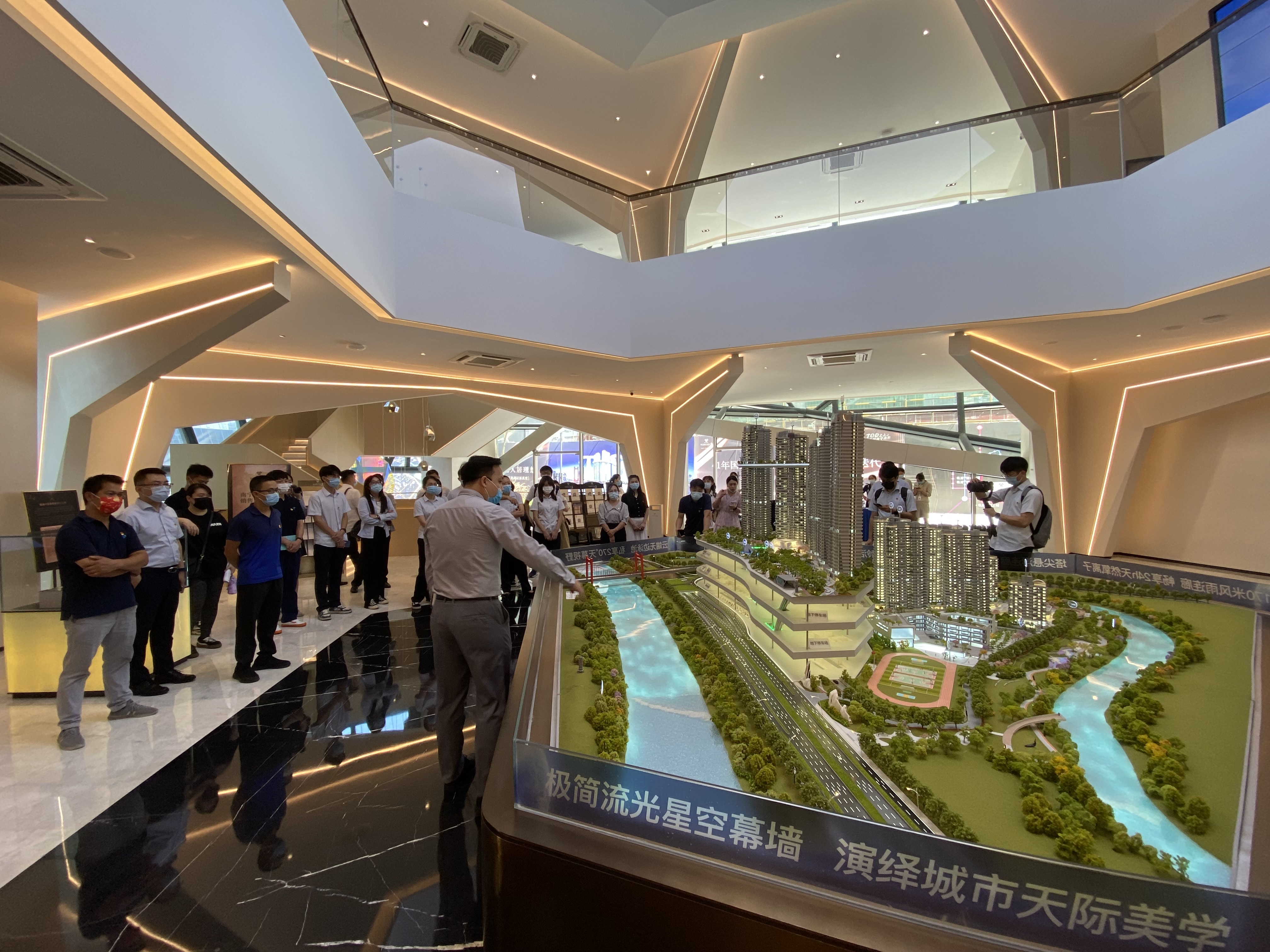 活動中,主持人帶領(lǐng)各單位黨員代表參觀軌道地產(chǎn)TOD展館,介紹南寧軌道交通集團(tuán)的歷史和成果。