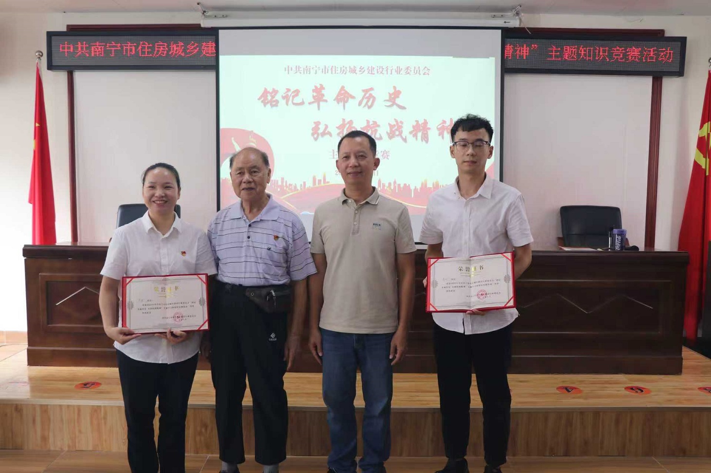 為紀念中國人民抗日戰(zhàn)爭暨世界反法西斯戰(zhàn)爭勝利80周年,深切緬懷革命先烈,大力弘揚偉大抗戰(zhàn)精神和愛國主義傳統(tǒng),市住建行業(yè)黨委嚴格遵照黨中央要求,于2025年8月28日上午在黨員活動中心舉辦“銘記革命歷史 弘揚抗戰(zhàn)精神”主題知識競賽活動。我公司黨支部派優(yōu)秀黨員盧波和入黨積極分子肖欣積極參加活動。