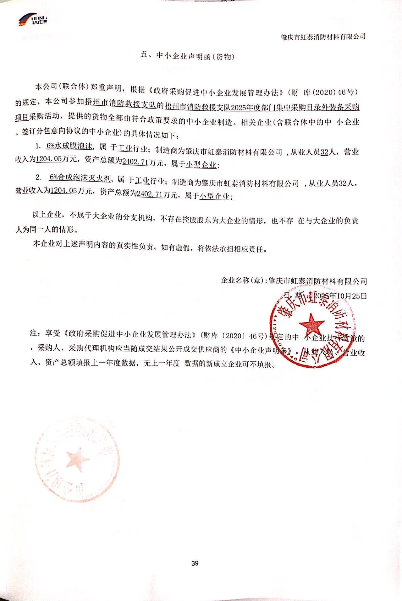 供應商名稱:肇慶市虹泰消防材料有限公司