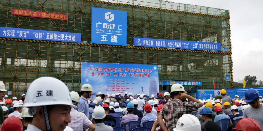 2018年5月11日,公司技術管理部門有關負責人和南寧市內(nèi)各項目總監(jiān),參加了由南寧市城鄉(xiāng)建設委員會、南寧市安全生產(chǎn)管理監(jiān)督局等單位主辦的2018年南寧市建筑工程“質(zhì)量安全管理標準化”暨“黑臭水體、施工揚塵”專項治理觀摩會。觀摩項目是廣西建工五建總承包施工的“廣西醫(yī)科大學東盟國際口腔醫(yī)學院項目北地塊主體工程”項目。觀摩會引千人觀摩,持續(xù)2小時。觀摩主要內(nèi)容如下: