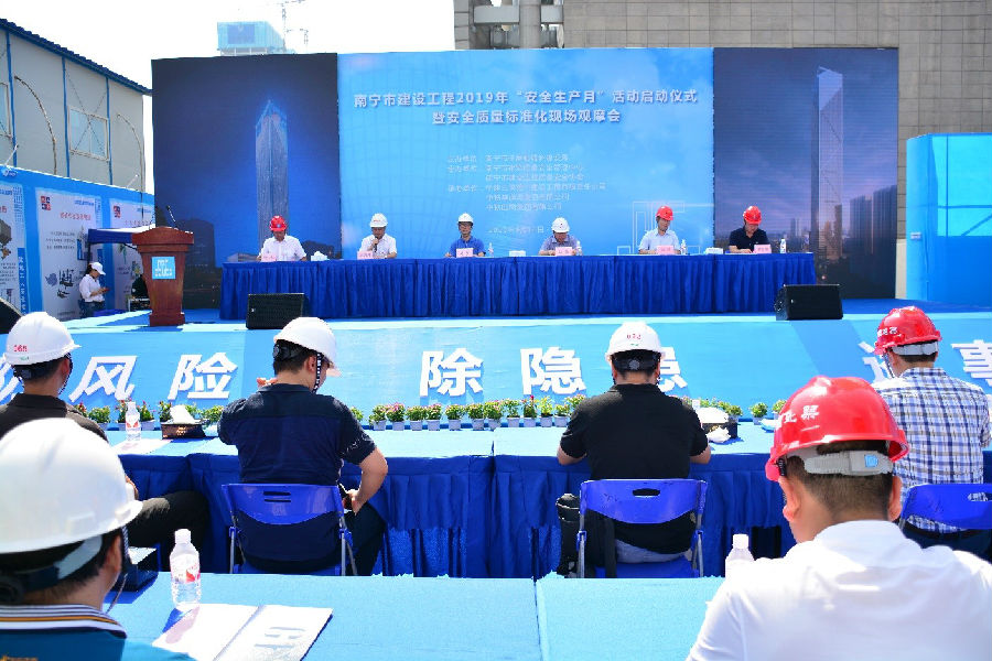 2019年6月14日,公司組織參加了由南寧市住建局、南寧市建管中心、南寧市建設(shè)質(zhì)安協(xié)會(huì)、中建三局一公司、中鐵四局、中鐵隧道局聯(lián)合承辦的南寧市建設(shè)工程2019年“安全生產(chǎn)月”活動(dòng)啟動(dòng)儀式暨安全質(zhì)量標(biāo)準(zhǔn)化現(xiàn)場(chǎng)觀摩會(huì)。今年是全國(guó)第18個(gè)“安全生產(chǎn)月”,以“防風(fēng)險(xiǎn)、除隱患、遏事故”為主題。啟動(dòng)儀式由市建設(shè)質(zhì)安協(xié)會(huì)李壽坤會(huì)長(zhǎng)主持,市住建局黃贊副局長(zhǎng)、市建管中心錢強(qiáng)主任、中建三局一公司廣西公司總經(jīng)理張少林、廣西威壯房地產(chǎn)有限公司總經(jīng)理劉超、廣西威壯房地產(chǎn)有限公司副總經(jīng)理洪志星出席會(huì)議,參加啟動(dòng)儀式的還有各縣、城區(qū)、開(kāi)發(fā)區(qū)主管部門(mén)領(lǐng)導(dǎo),駐市施工、監(jiān)理企業(yè)及項(xiàng)目業(yè)主主要負(fù)責(zé)人。