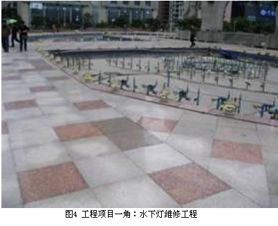 我公司負責該工程施工階段全過程監(jiān)理。工程內容包括①土建維修,它又包括石材鋪裝、路面、噴泉水溝蓋板等維修;②亮化維修;③噴泉水下燈維修;④石凳設置。為更好地完成監(jiān)理工作,我公司派出了素質好、能力強的監(jiān)理人員組建項目監(jiān)理處,他們認真負責、踏實工作,圓滿完成了監(jiān)理任務,向政府和市民交出了一份滿意答卷。