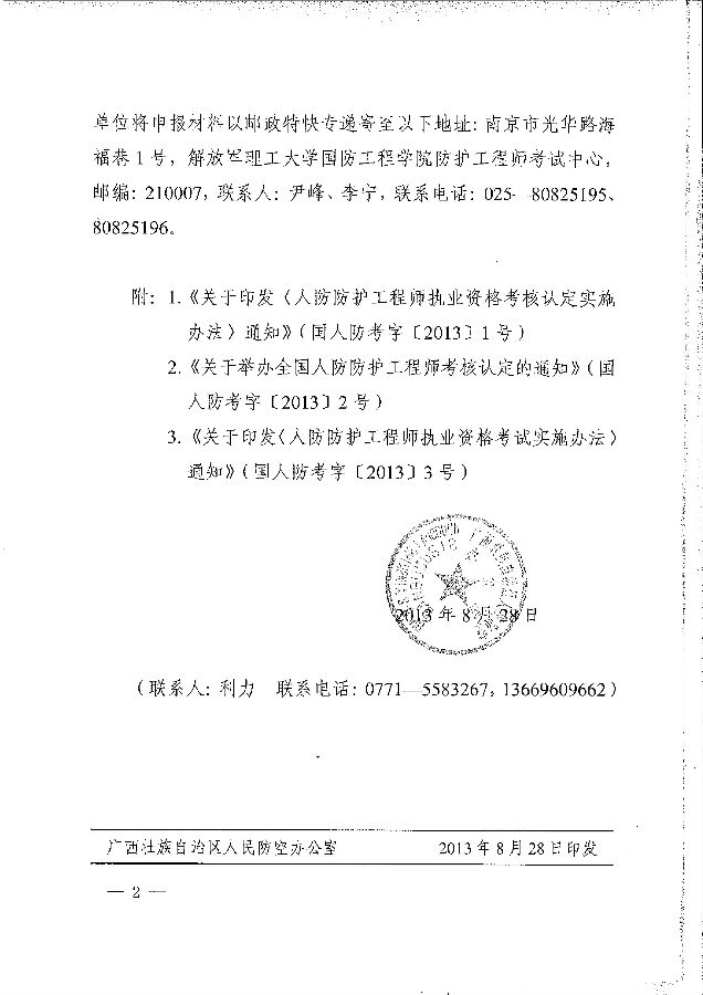 桂人防辦字【2013】204號(hào)關(guān)于轉(zhuǎn)發(fā)《人防防護(hù)工程師執(zhí)業(yè)資格考核認(rèn)定實(shí)施辦法》的通知