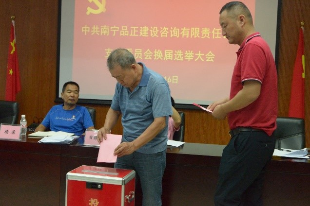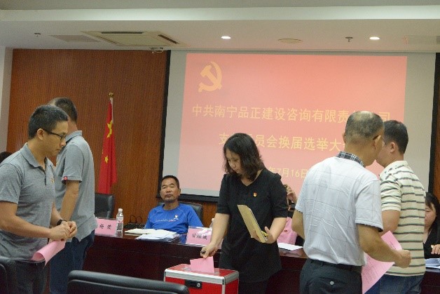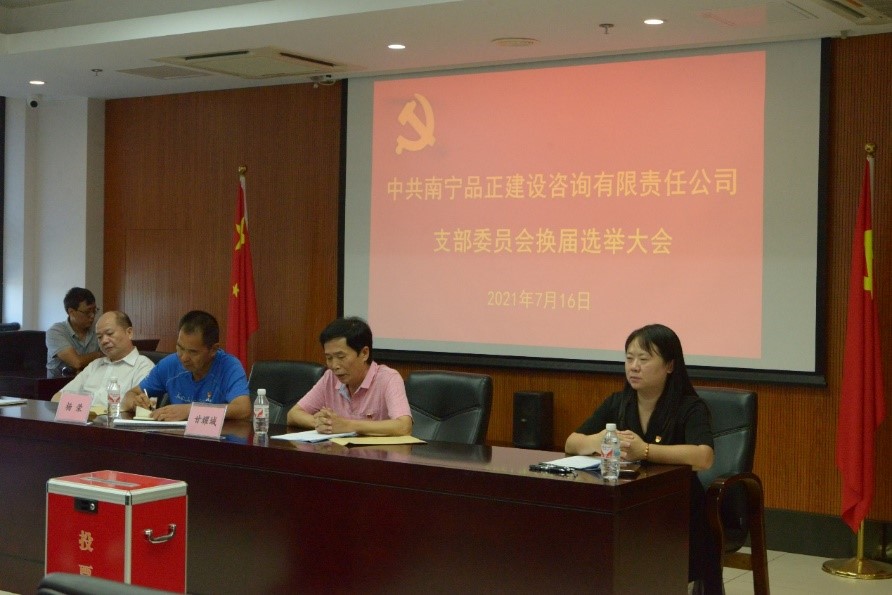 2021年7月16日上午,中共南寧品正建設(shè)咨詢有限責(zé)任公司支部委員會(huì)換屆選舉大會(huì)在公司會(huì)議室隆重舉行。