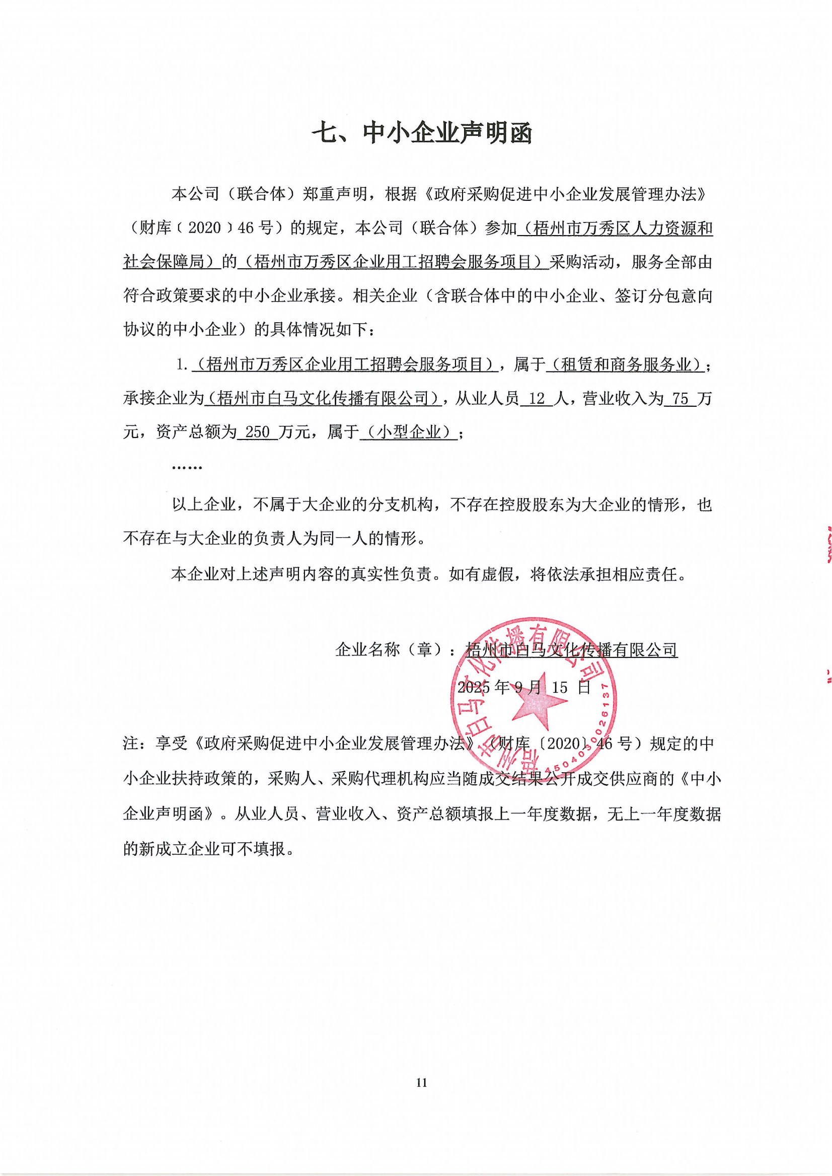 二、項(xiàng)目名稱(chēng):梧州市萬(wàn)秀區(qū)企業(yè)用工招聘會(huì)服務(wù)項(xiàng)目